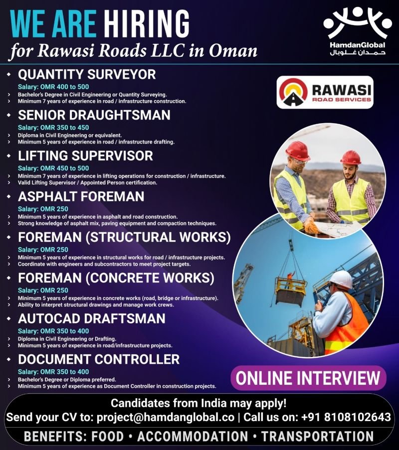 # Quantity Surveyor Jobs in Oman – Rawasi Roads LLC We are seeking experienced professionals to join our team in