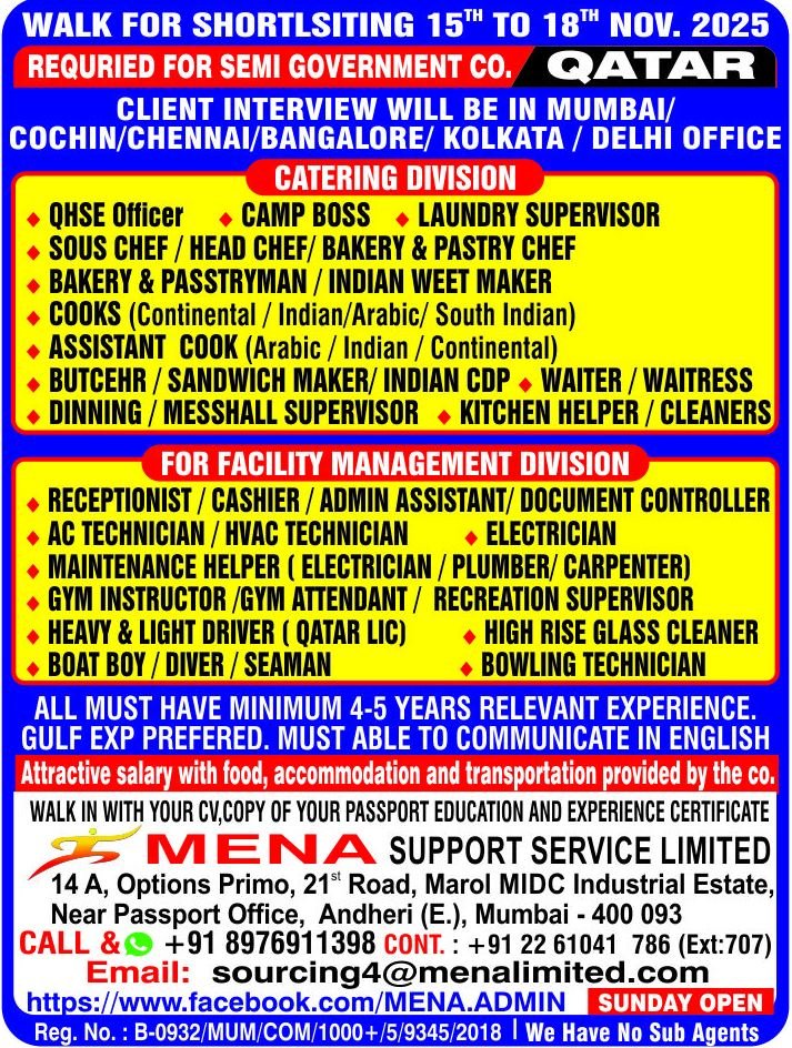 # QHSE and Hospitality Jobs in Qatar – Multiple Positions We are seeking experienced professionals to fill various roles in