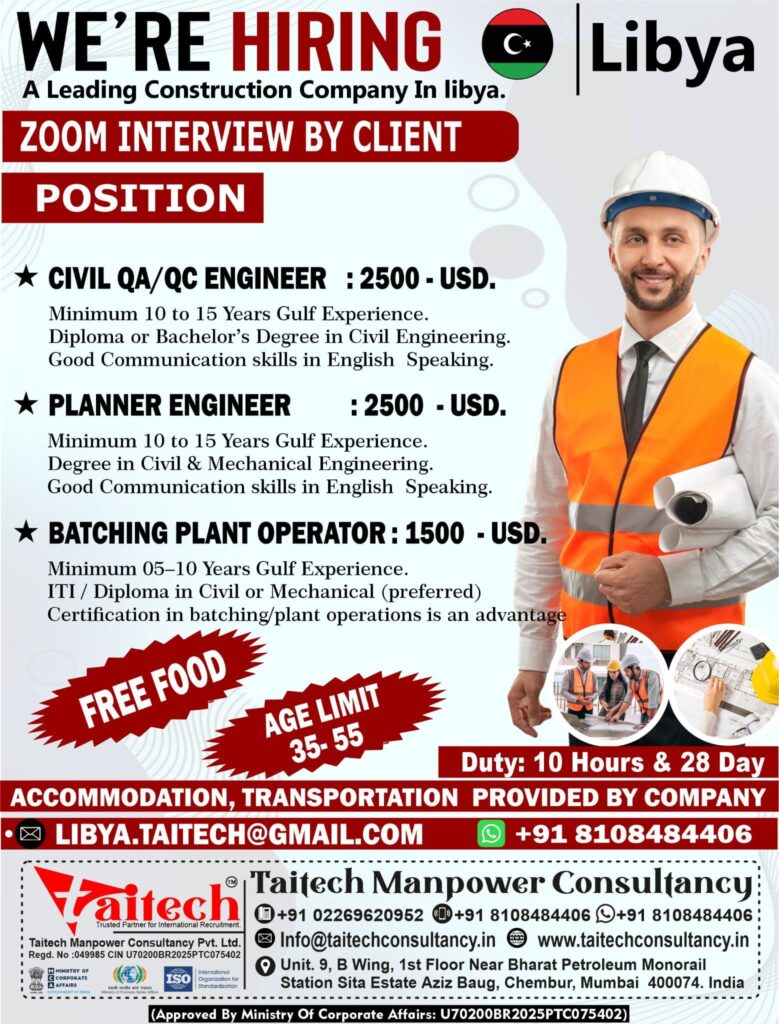 # Civil Engineering Jobs in Libya – QA/QC, Planner, and Batching Plant Operator We are seeking experienced professionals to join