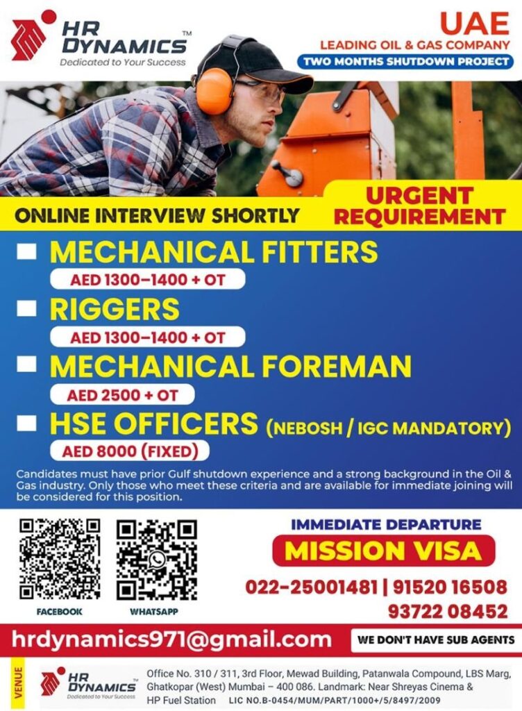 # Mechanical and HSE Jobs in UAE – Shutdown Project We are seeking experienced professionals to join a leading oil
