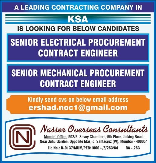 # SENIOR PROCUREMENT CONTRACT ENGINEER Jobs in Gulf – SENIOR ELECTRICAL PROCUREMENT CONTRACT ENGINEER, SENIOR MECHANICAL PROCUREMENT CONTRACT ENGINEER We
