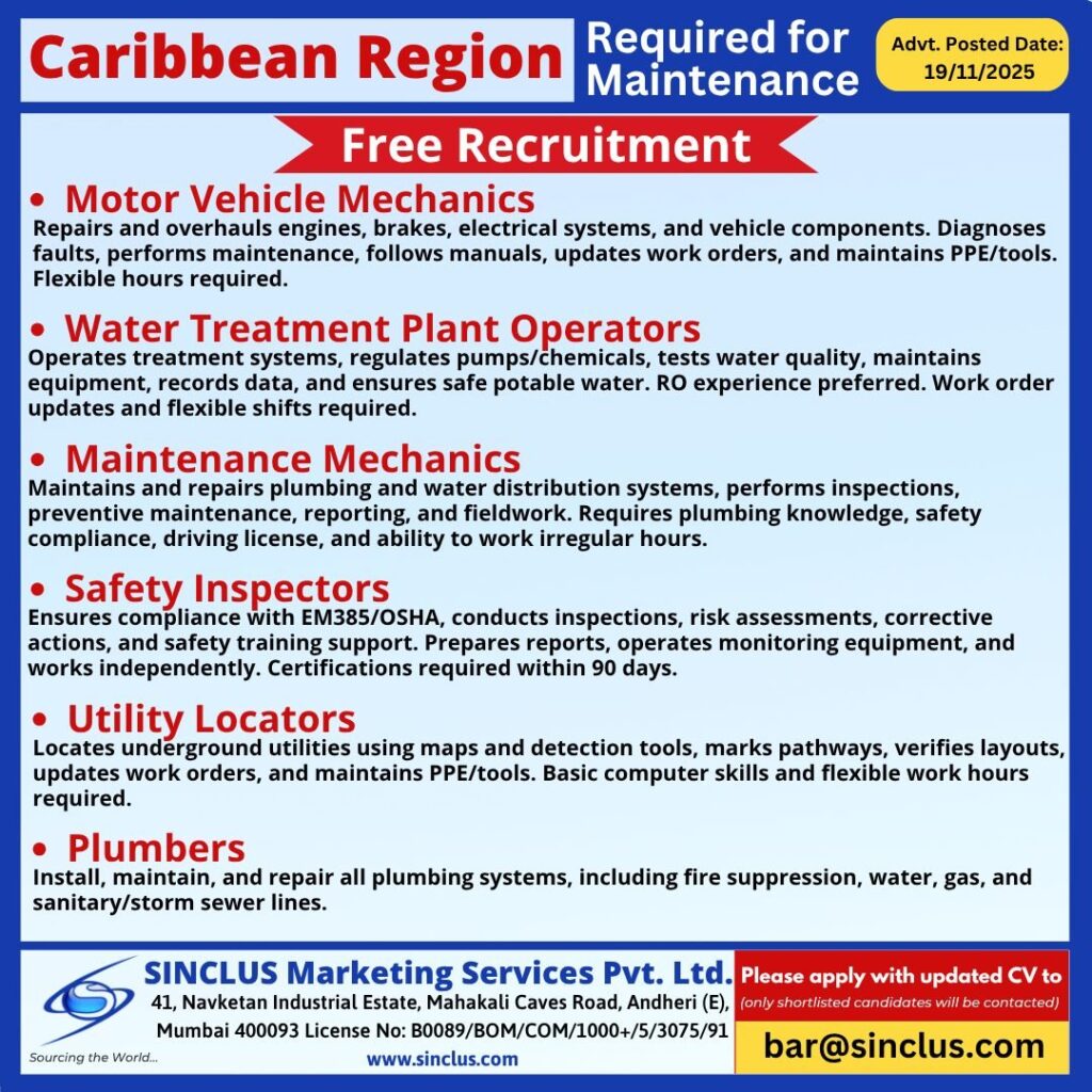 # Motor Vehicle Mechanic Jobs in Caribbean Region – Multiple Positions We are seeking skilled Motor Vehicle Mechanics to join