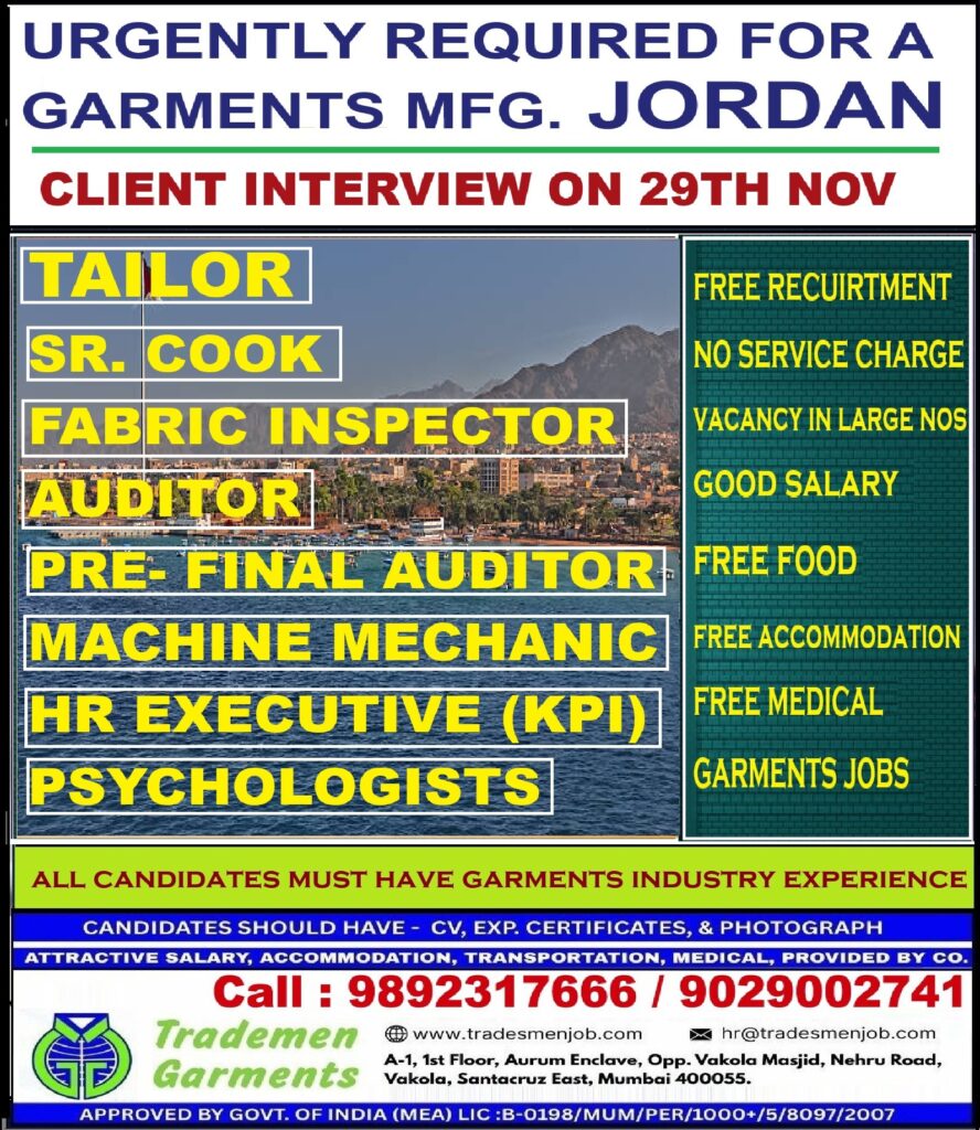 # Garments Manufacturing Jobs in Jordan β Garments Manufacturing Staff We are seeking skilled and experienced professionals to join a