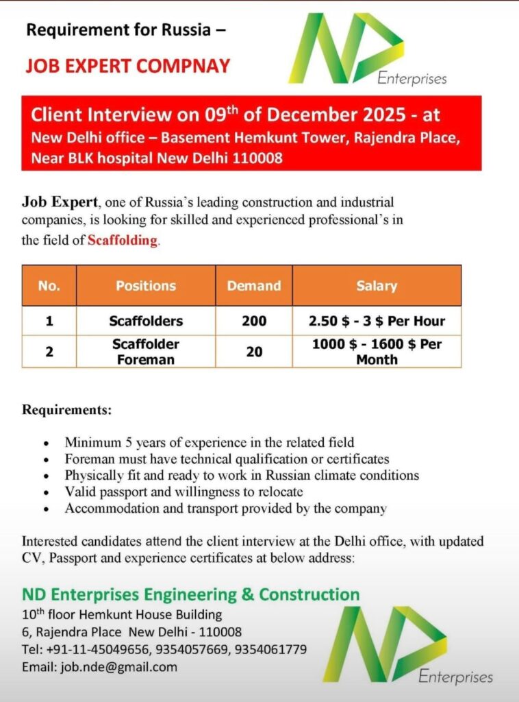 # Scaffolding Jobs in Russia β Scaffolders and Foreman Job Expert, one of Russiaβs leading construction and industrial companies, is
