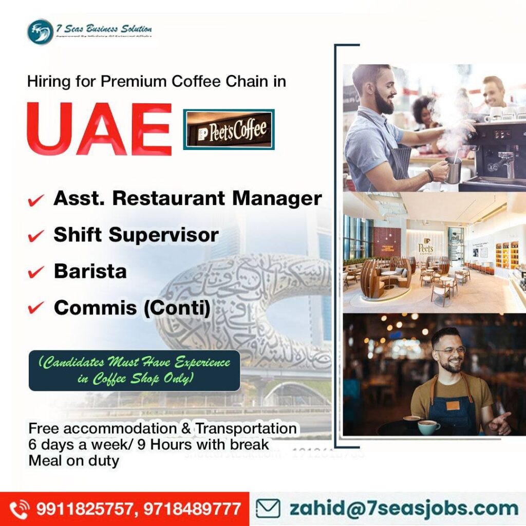 # Restaurant Jobs in UAE – Asst. Restaurant Manager, Shift Supervisor, Barista We are seeking highly skilled and experienced professionals