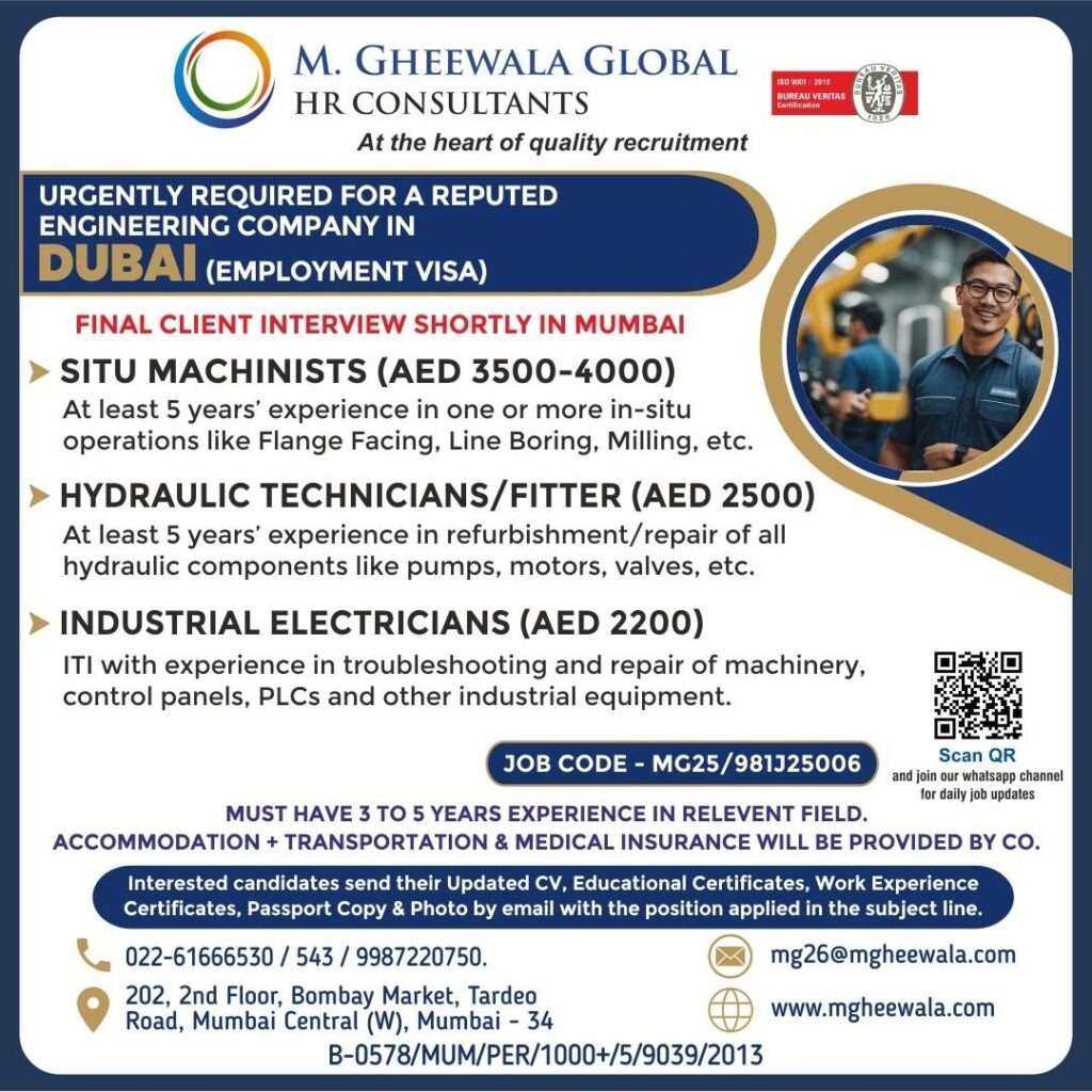 # Machinist and Technician Jobs in United Arab Emirates – Engineering Company We are seeking experienced professionals to join a