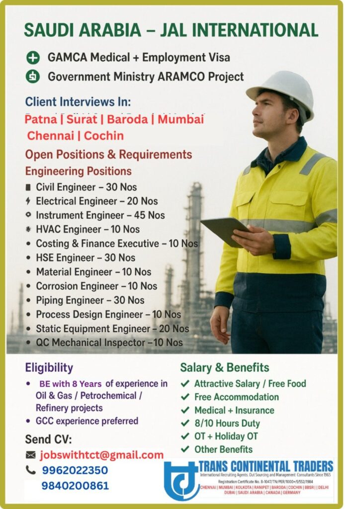 # Engineering Jobs in Saudi Arabia – Civil, Electrical, Instrument, and More We are seeking experienced engineers to join our
