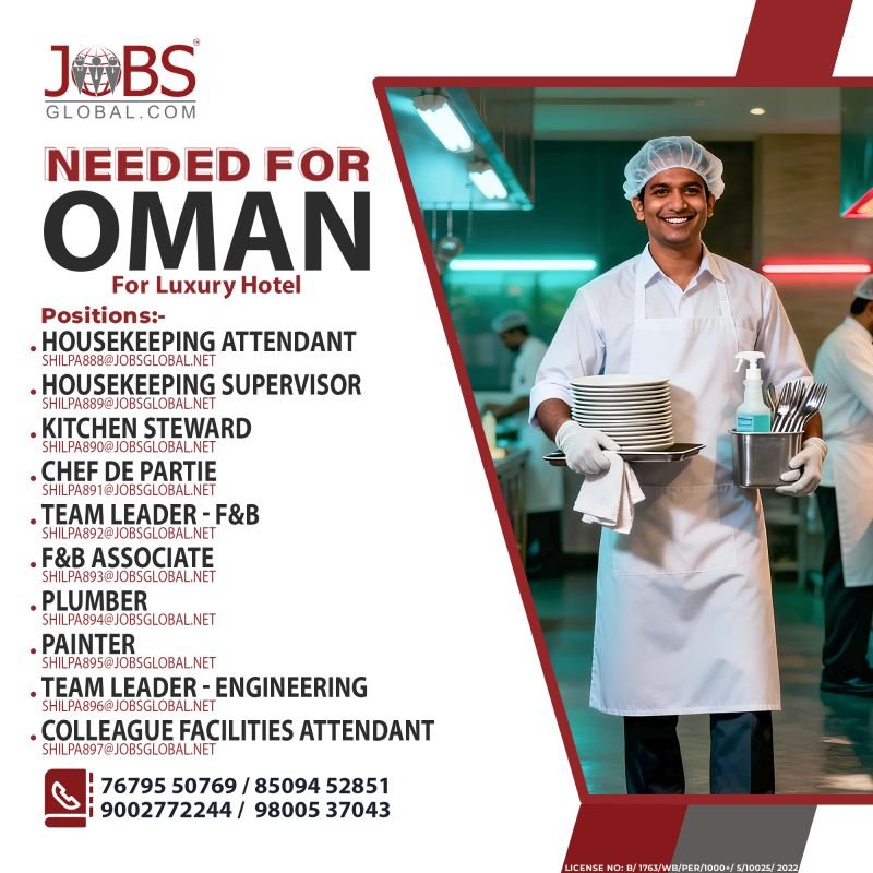 # Hotel Jobs in Oman – Housekeeping, Kitchen, F&B, Engineering, and Facilities We are seeking talented and experienced professionals to