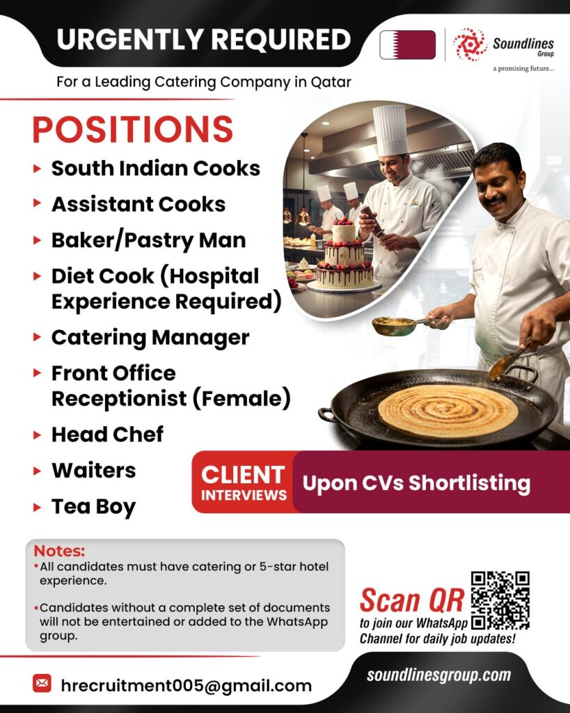 # Catering Jobs in Qatar – South Indian Cooks, Assistant Cooks, and More We are seeking talented and experienced professionals