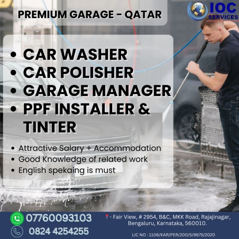 # Car Washer, Car Polisher, Garage Manager, PPF Installer & Tinter Jobs in Qatar β Multiple Positions We are seeking