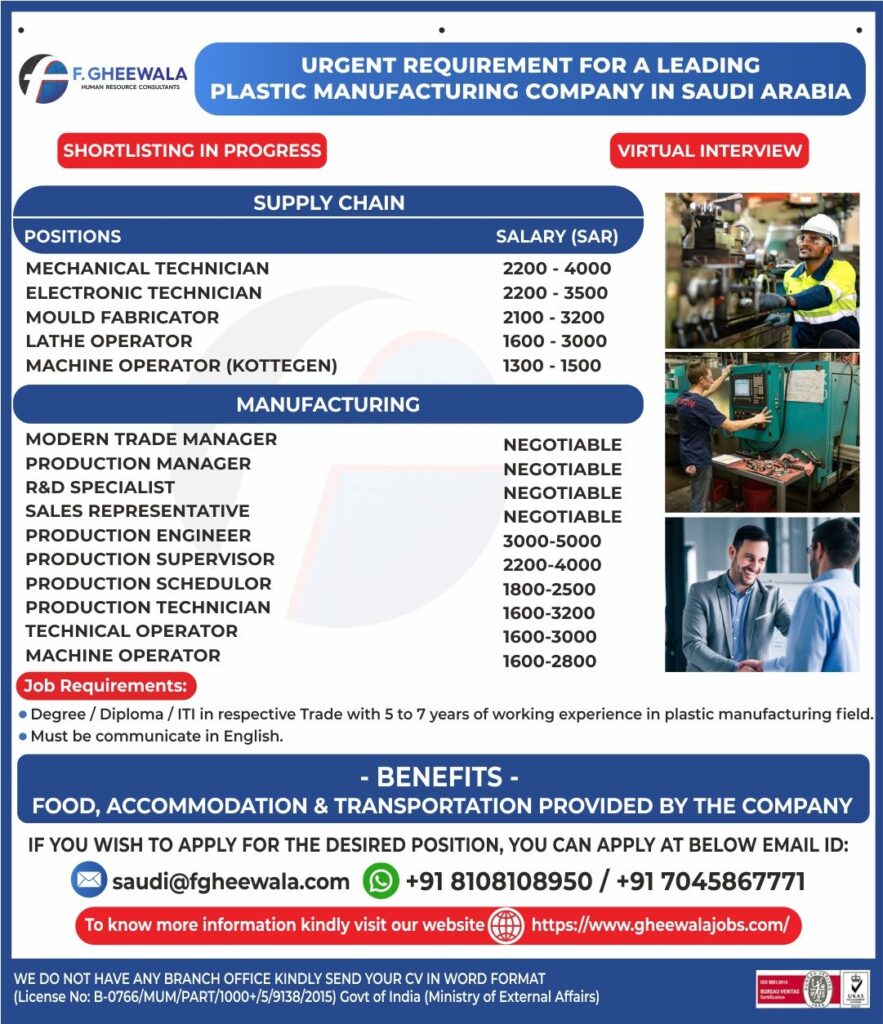 # Manufacturing Jobs in Saudi Arabia – Mechanical, Electronic, and Production We are seeking experienced professionals to join a leading