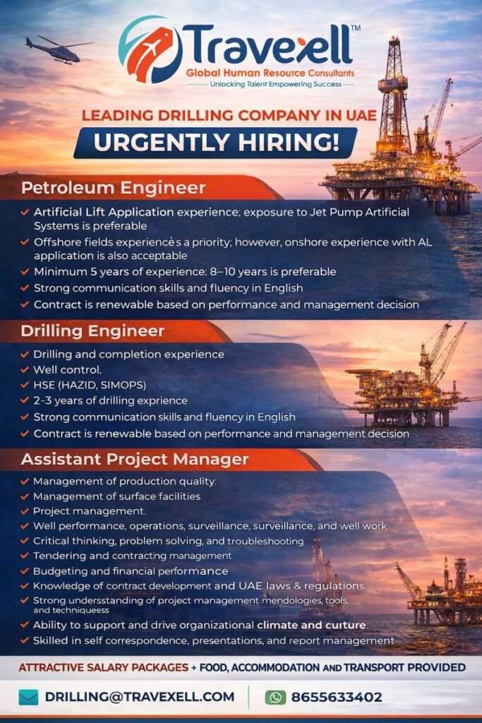# Petroleum Engineer Jobs in UAE – Drilling and Production We are seeking experienced professionals to join our team in