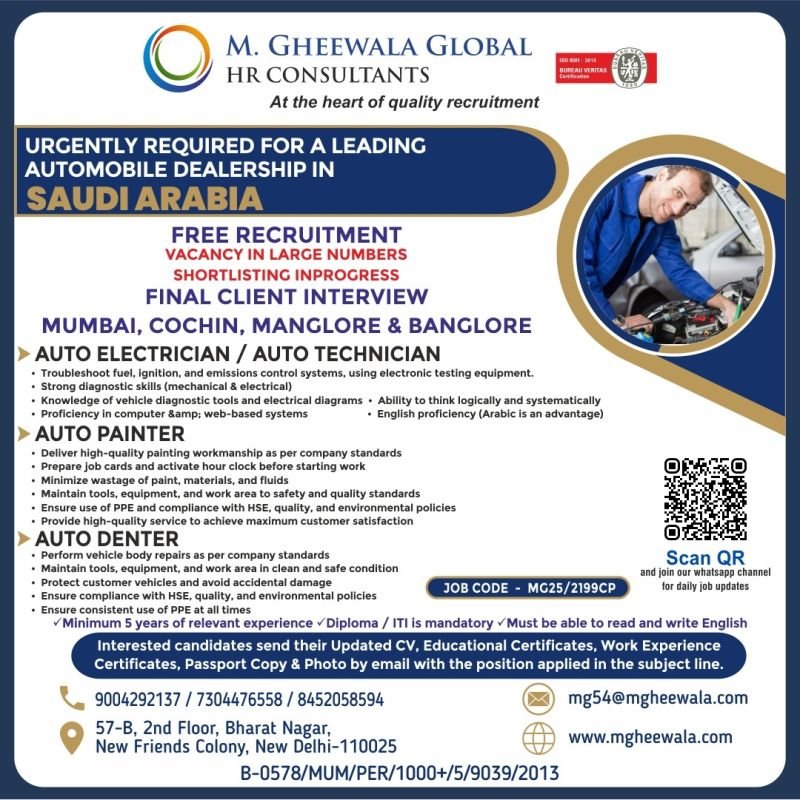 # Auto Electrician/Auto Technician and Auto Painter/Denter Jobs in Saudi Arabia – Automobile Dealership We are seeking skilled professionals to