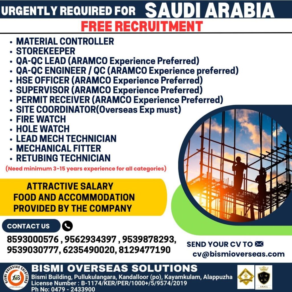 # Material Controller Jobs in Saudi Arabia – Multiple Positions We are seeking experienced professionals to fill various roles in