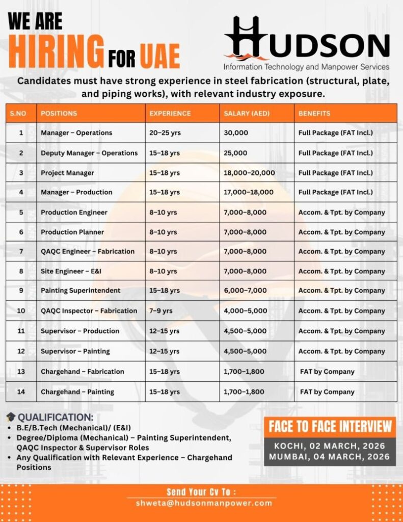 # Structural and Engineering Jobs in Saudi Arabia – Fabricator, Engineer, and Foreman We are seeking skilled professionals for various