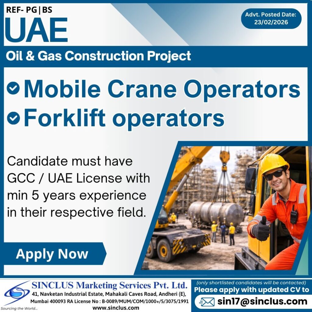 # Mobile Crane Operator and Forklift Operator Jobs in UAE – Oil & Gas Construction Project We are seeking experienced