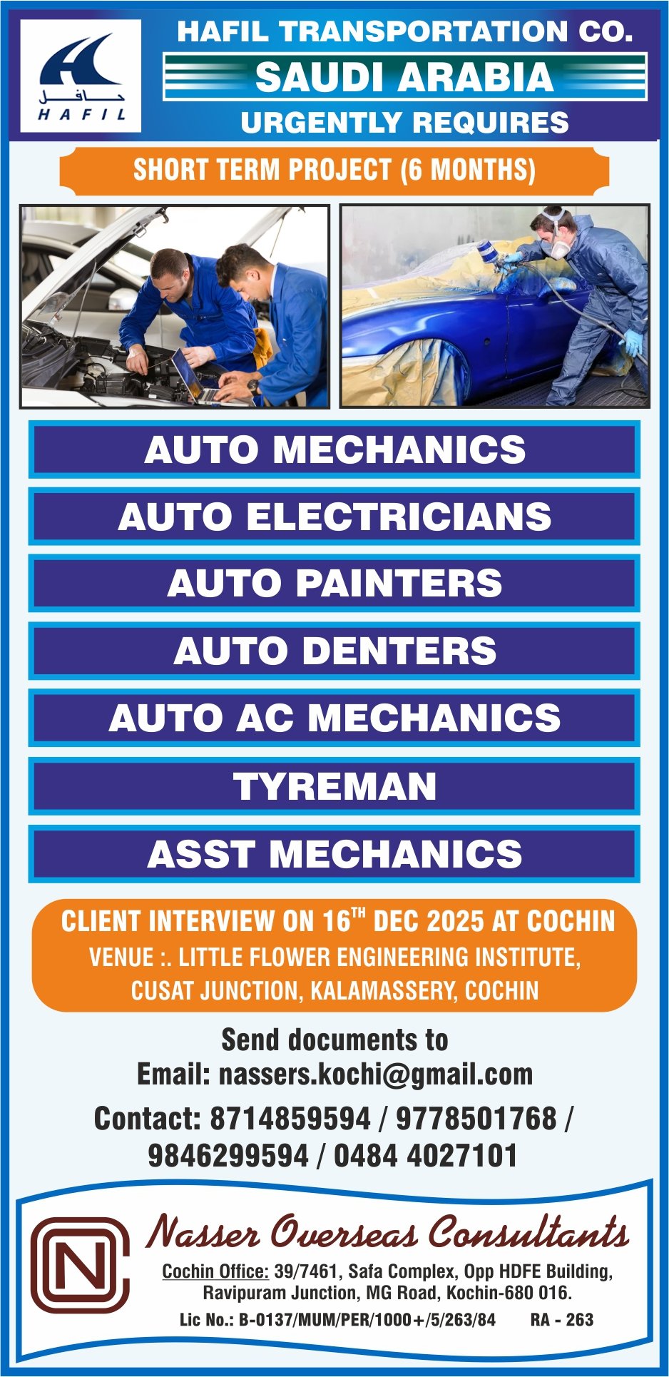 We are seeking skilled and experienced auto professionals to join our team in the Gulf region. The ideal candidates will have a strong background in their respective fields and be able to work efficiently in a fast-paced environment. This is an excellent opportunity for those looking to take their careers to the next level and work with a reputable company.