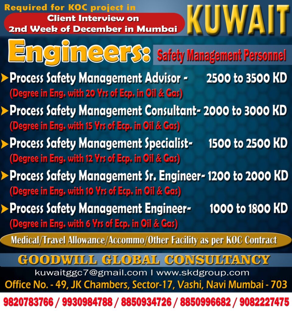 # Process Safety Management Jobs in Kuwait – Multiple Positions We are seeking experienced professionals for a KOC project with