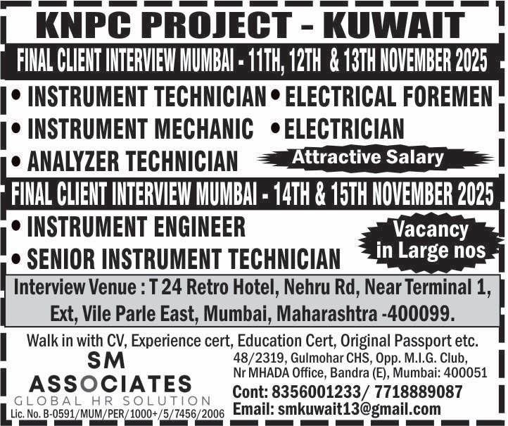 # Instrument and Electrical Jobs in Kuwait – Instrument Technician, Electrical Foremen, and More We are seeking skilled professionals to