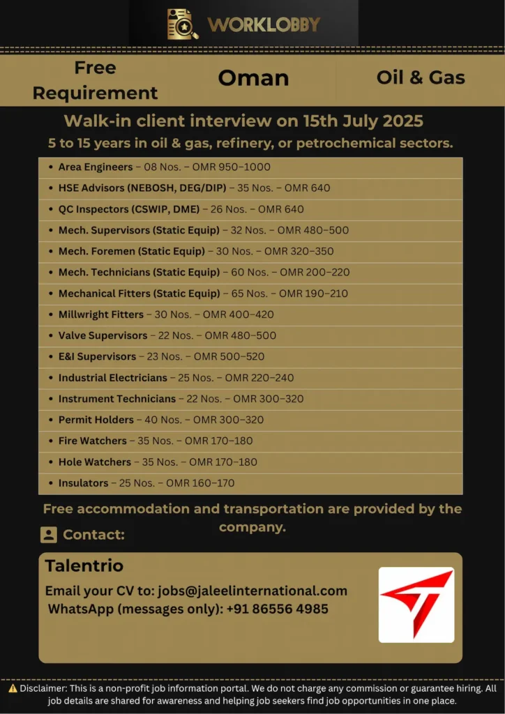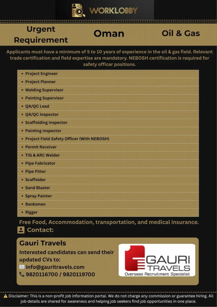 🚨 Urgent Hiring for Oman Shutdown – 2025 | Short-Term Oil & Gas Project 🇴🇲 ⏳ Duration: 2–3 Months Shutdown🛠️