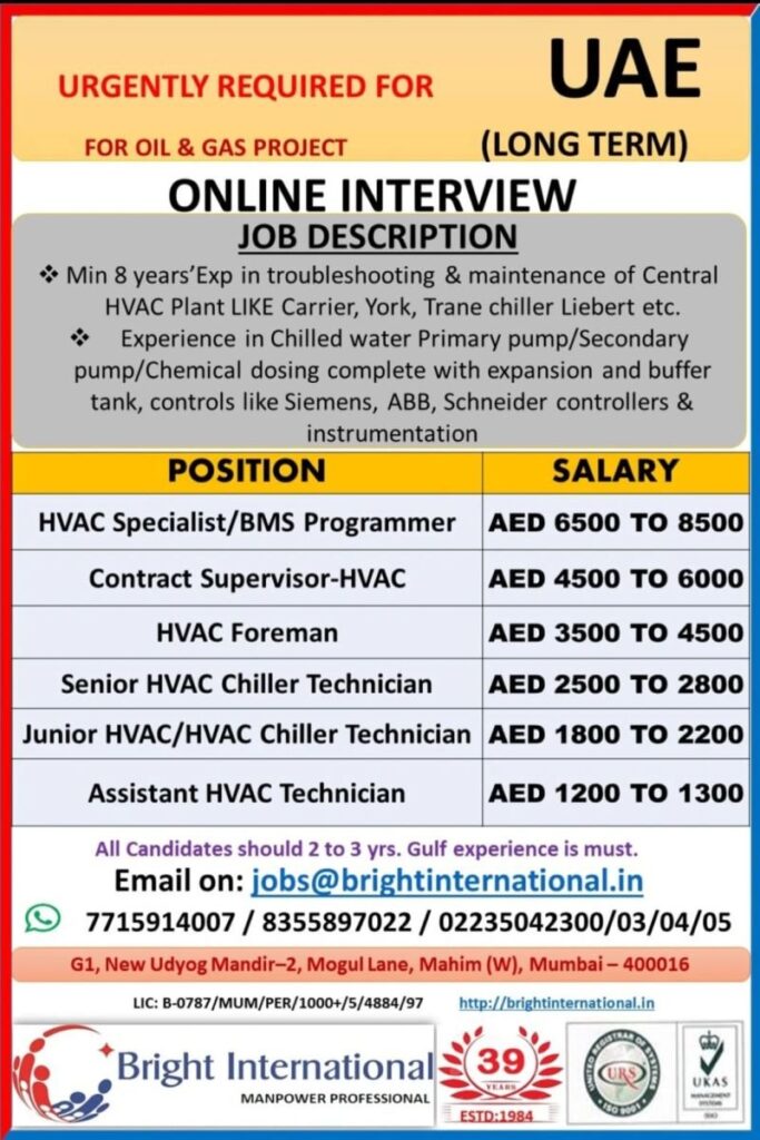 # HVAC Jobs in UAE – Specialist, Supervisor, Foreman, Technician We are seeking experienced HVAC professionals to join our team