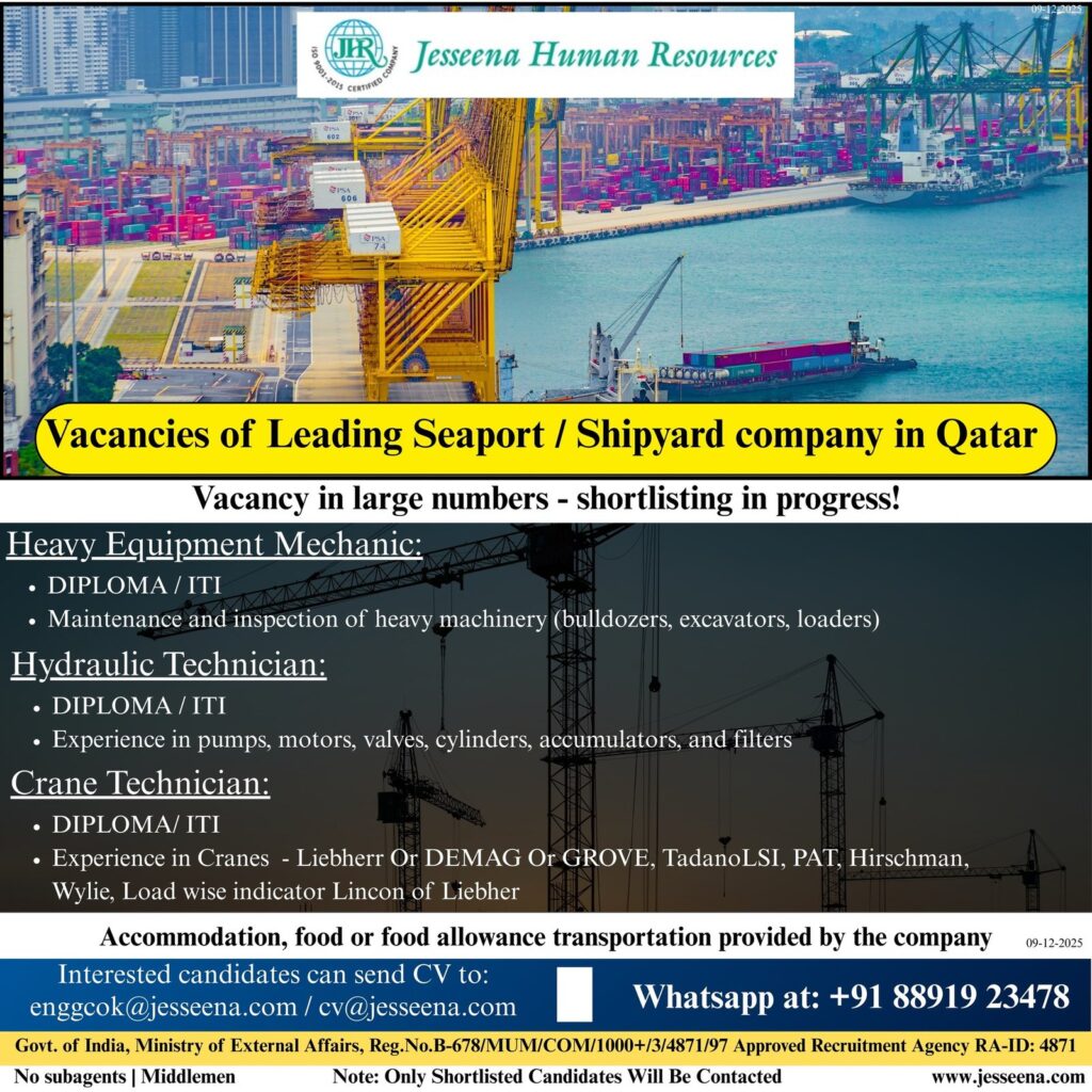 # Heavy Equipment Mechanic Jobs in Qatar – Multiple Positions We are seeking skilled technicians to join a leading seaport