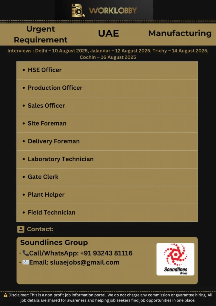 Precast & Readymix Division Hiring for UAE in India Looking for an opportunity to work in Dubai? The Soundlines Group