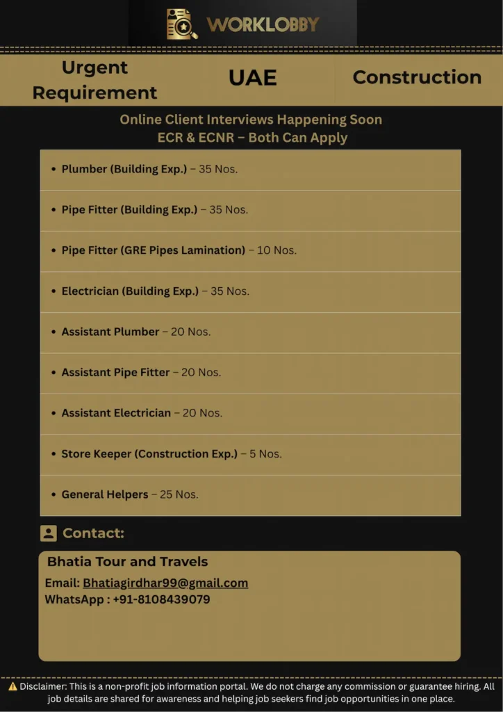 Title: Construction and Engineering Jobs in UAE – Multiple Positions We are seeking experienced professionals for a leading contracting company