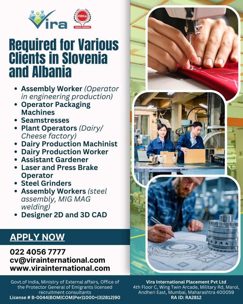 # Assembly and Production Jobs in Slovenia and Albania – Various Positions We are seeking skilled and dedicated individuals to