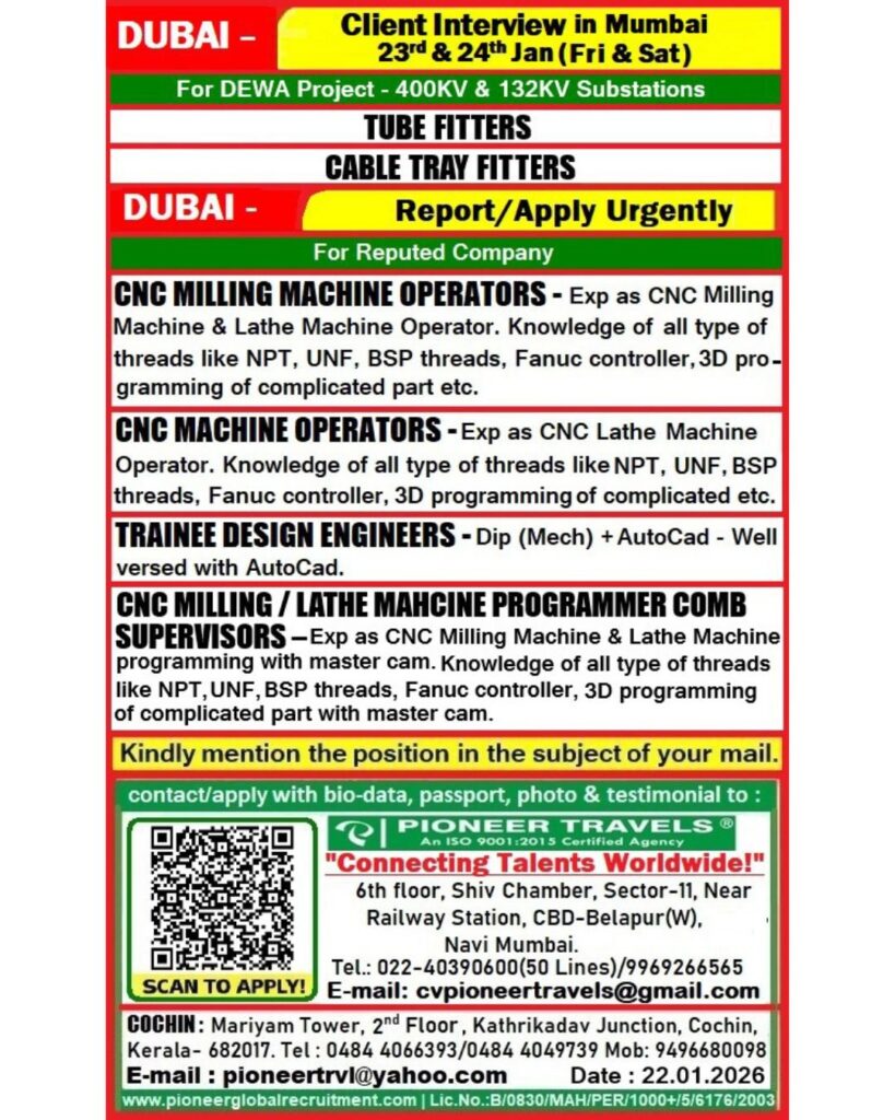 # TUBE FITTERS and CNC MACHINE OPERATORS Jobs in Gulf – Multiple Positions We are seeking skilled and experienced candidates