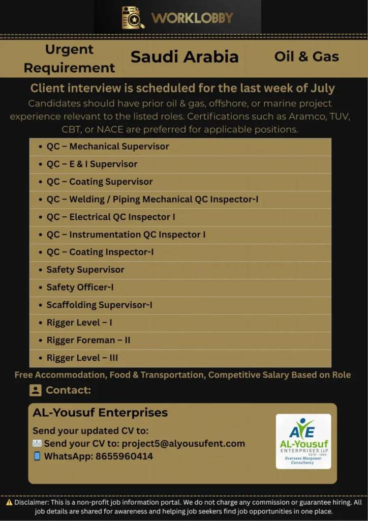 🚢 Saudi Offshore Jobs – Cochin Interview on 29th July Are you seeking exciting career opportunities in the oil and
