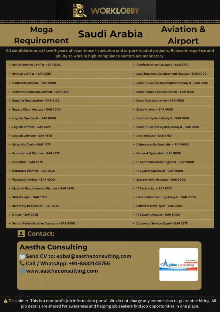 Saudi Airport Project Jobs – Apply Now Looking for Saudi airport project jobs with a reputed company? Aastha Consulting is