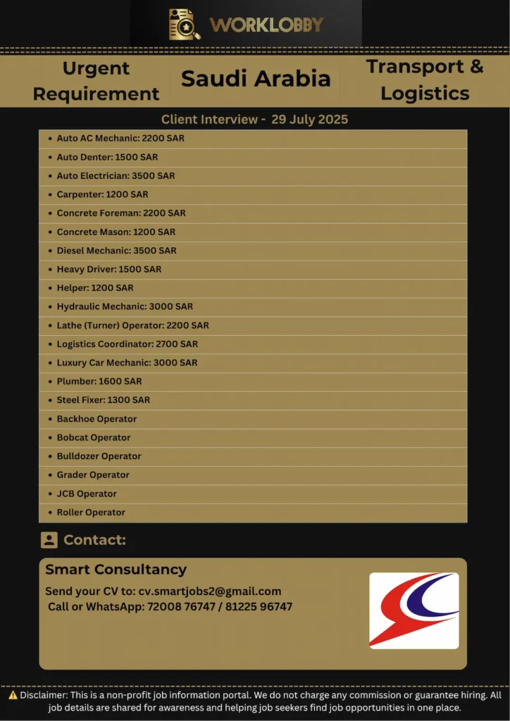 Saudi Arabia Jobs – Joude United Interview in Trichy (29 July 2025) Looking for a career abroad in the logistics