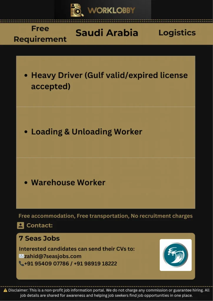 🚚 Urgent Hiring for Saudi Arabia – Logistics Company Jobs Looking for logistics jobs in Saudi Arabia? A leading logistics