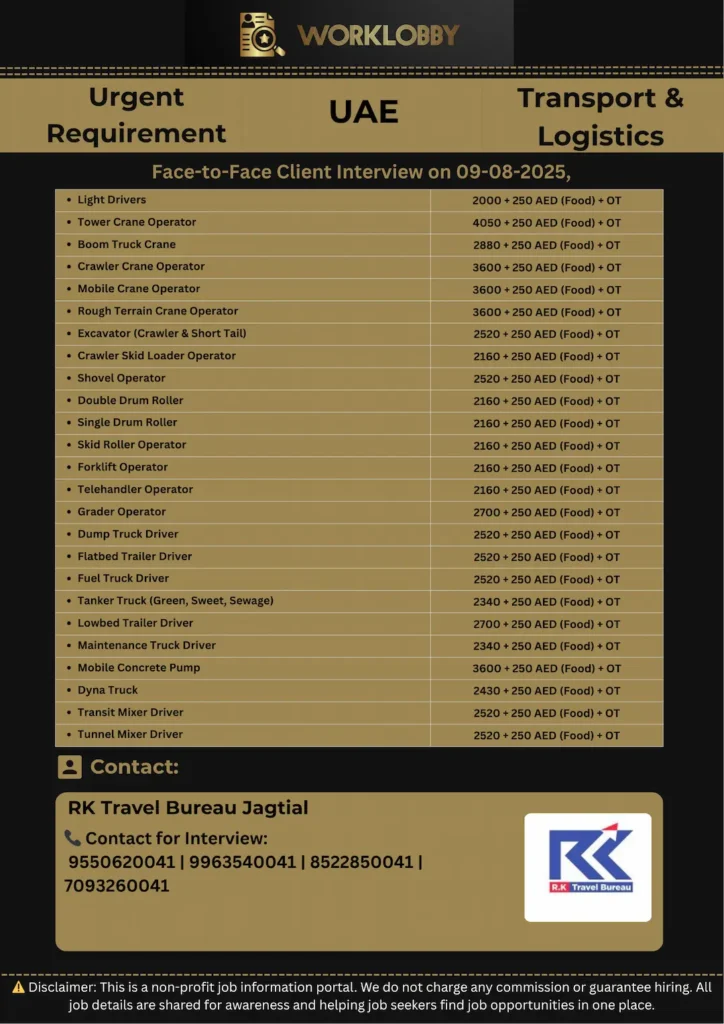 🚛 Urgent Hiring – UAE | Transport Company in Dubai | Heavy Vehicle Division 💼 Shortlisting in Progress – Apply