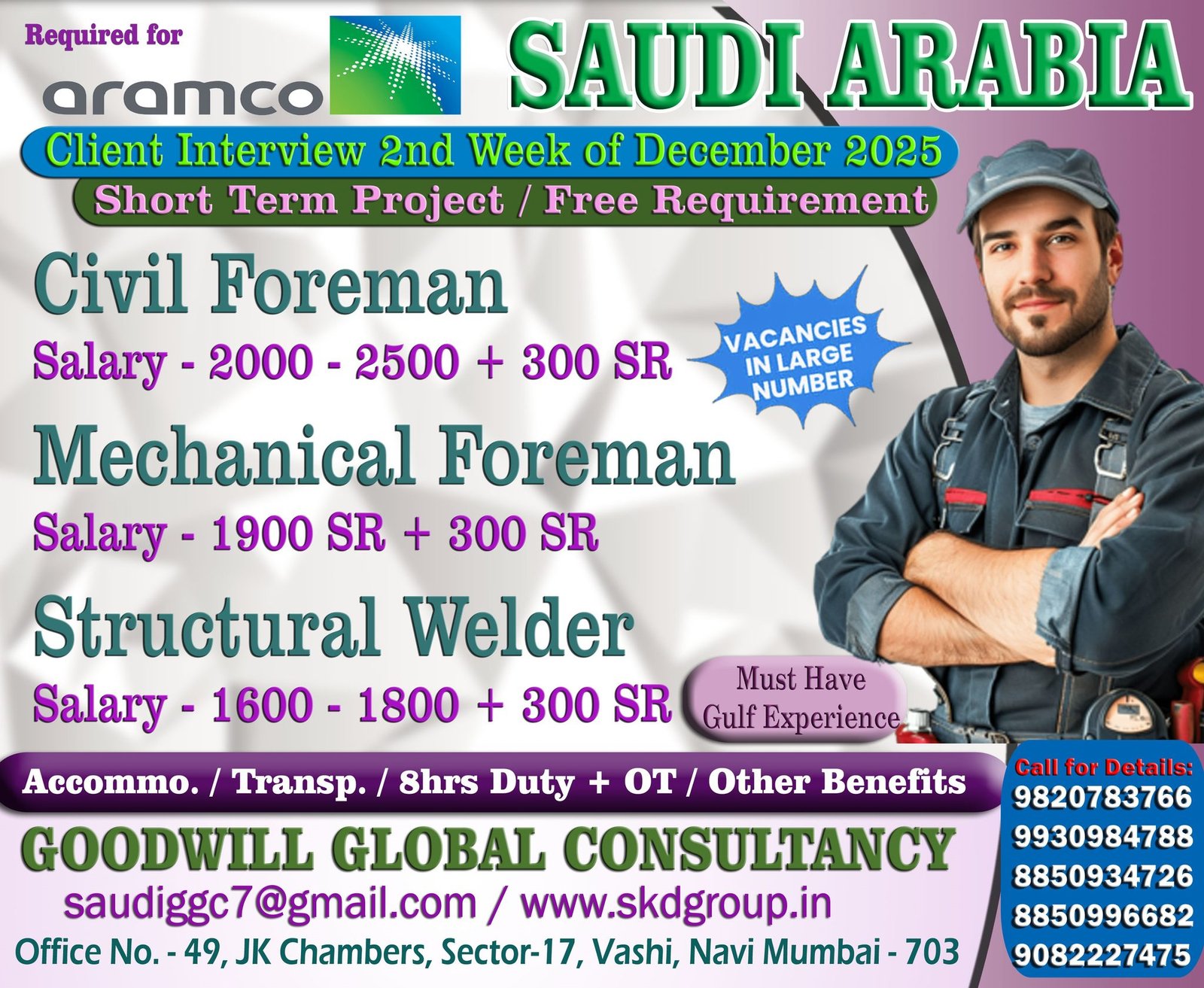 # Civil and Mechanical Foreman Jobs in Saudi Arabia – Foreman and Welder Positions