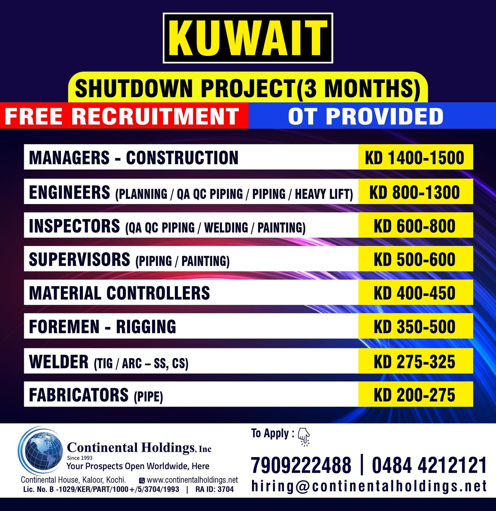 We are seeking experienced professionals to join our team in Kuwait for various construction roles. The ideal candidates will have a strong background in construction management, engineering, and inspection. This is a great opportunity to work on exciting projects and advance your career.