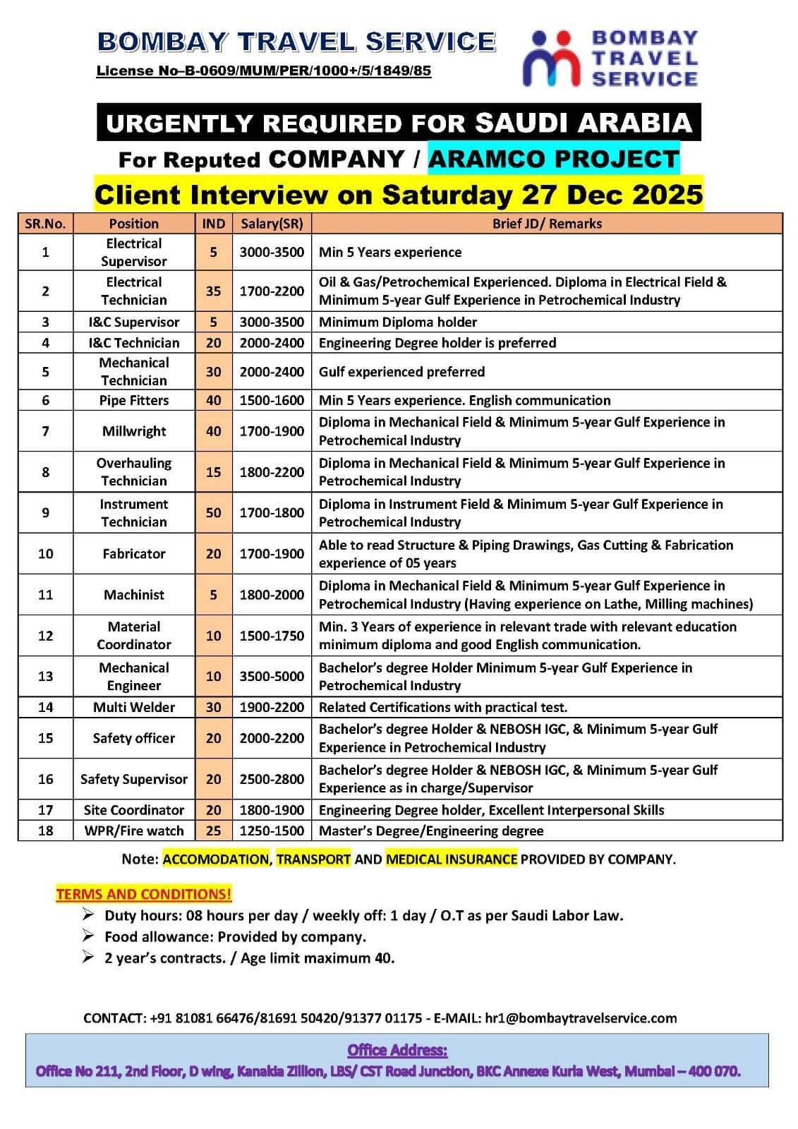 Email: hr1@bombaytravelservice.com