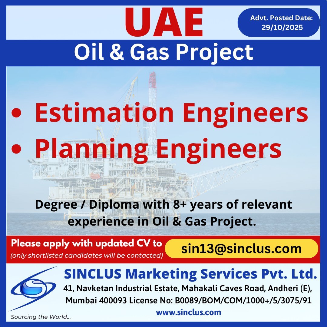 – Degree / Diploma with 8+ years of relevant experience in Oil & Gas Project