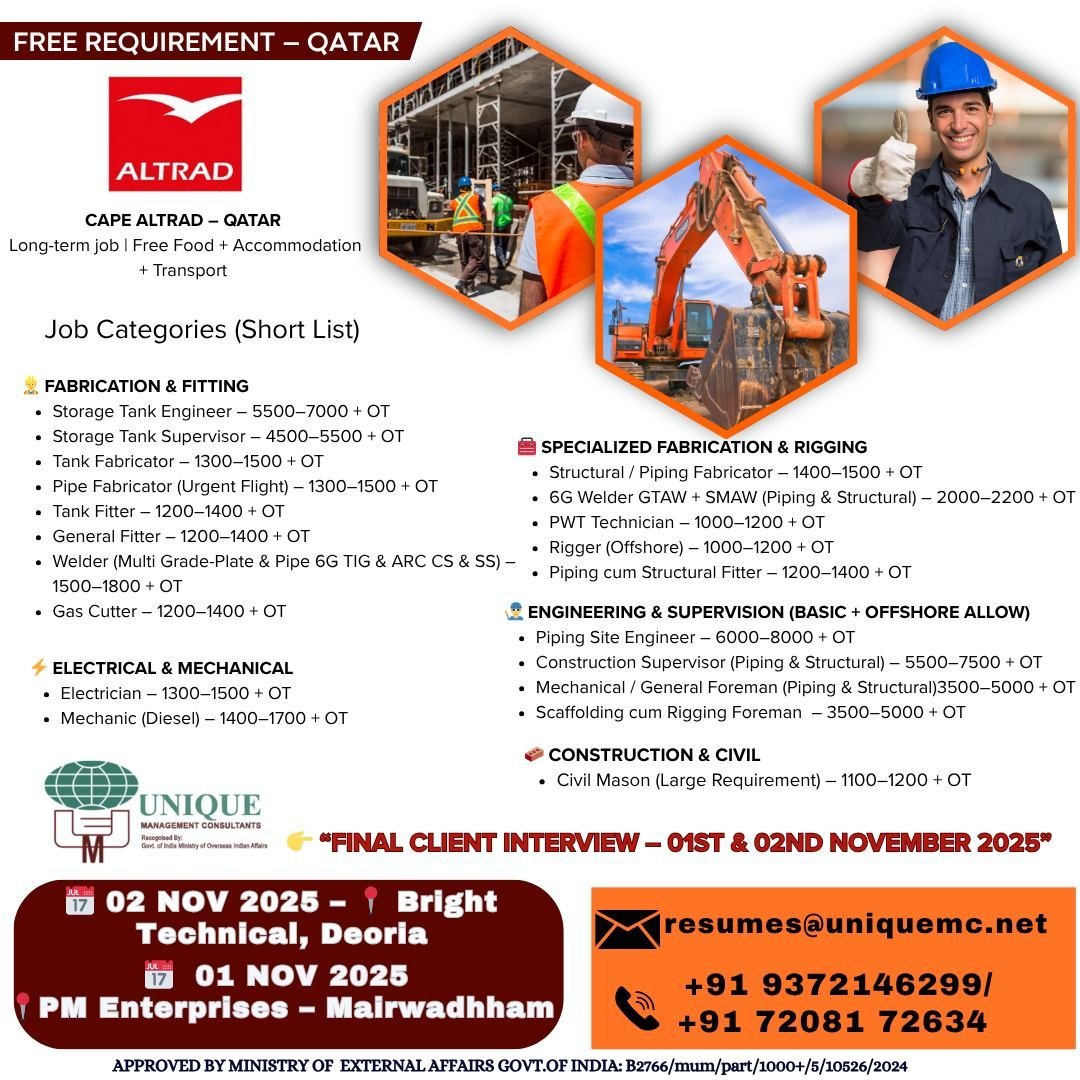 # Fabrication and Construction Jobs in Qatar – Multiple Positions