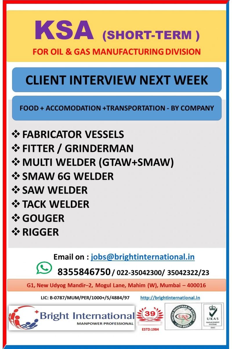 # Fabricator Jobs in KSA – Fitter, Grinder, Welder