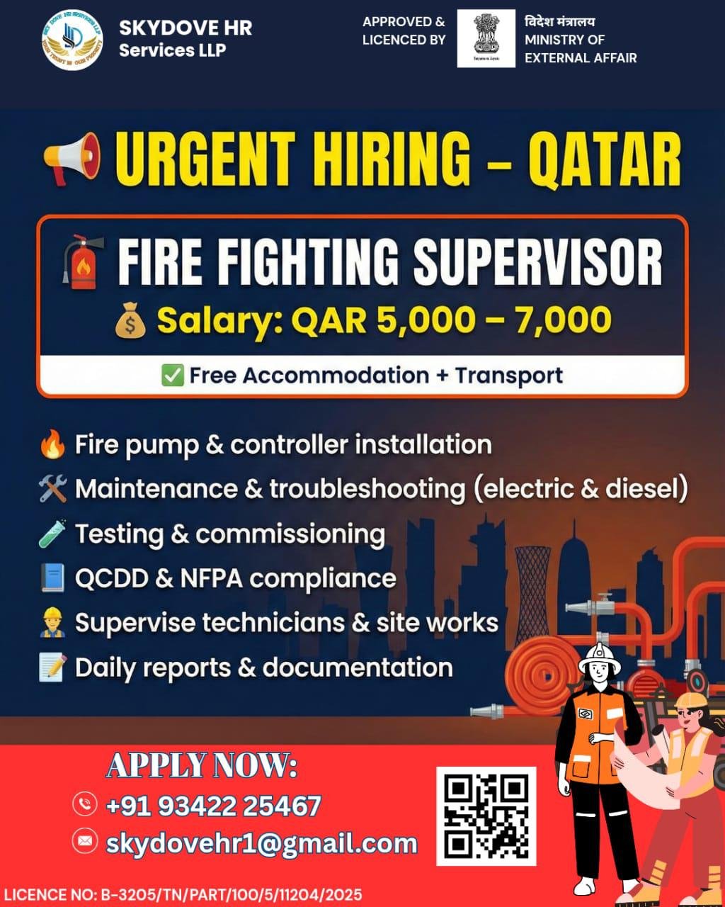 – Fire Fighting Supervisor (QAR 5,000 – 7,000)