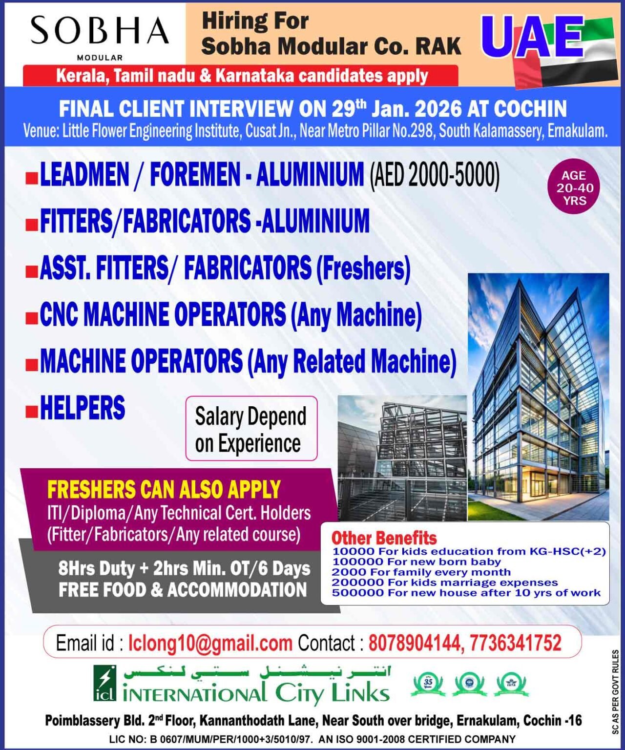 We are seeking skilled and experienced candidates for various positions in the Gulf region. The ideal candidates will have a strong background in fitting, fabricating, and operating machines. The company offers a competitive salary and benefits package.
