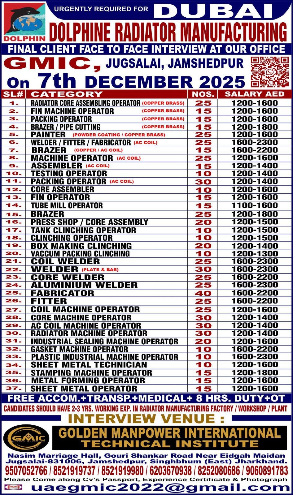 Company: DOLPHINE RADIATOR MANUFACTURING / GOLDEN MANPOWER INTERNATIONAL / TECHNICAL INSTITUTE