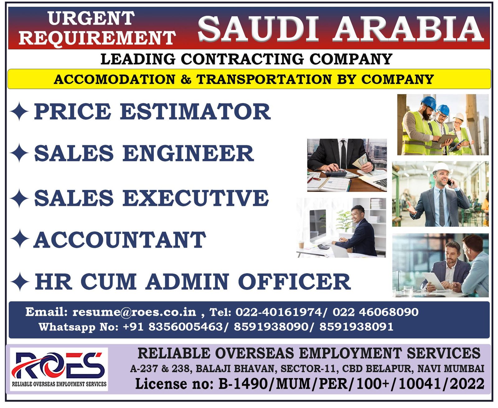 Email: resume@roes.co.in
