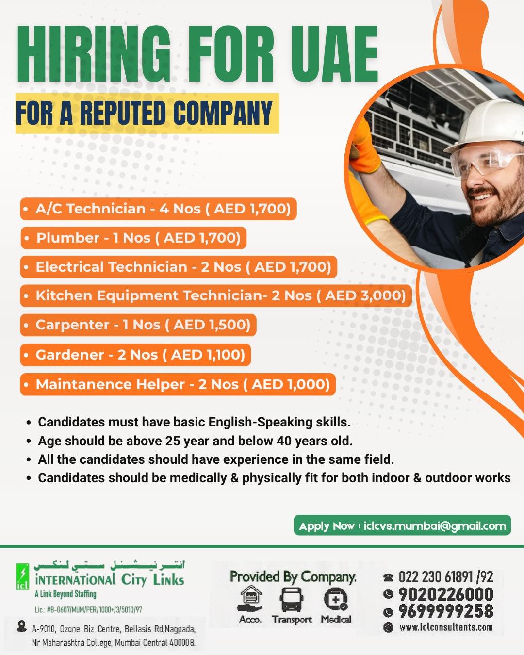 We are seeking experienced candidates for a reputed company. The ideal candidate should have basic English-speaking skills and experience in the same field. The role involves both indoor and outdoor work, requiring candidates to be medically and physically fit.